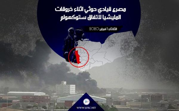 لقي قيادي ميداني حوثي مصرعه وأصيب آخرون الساعات الماضية في الحديدة غربي اليمن جراء خروقاتهم المتواصلة لاتفاق ستوكهولم.