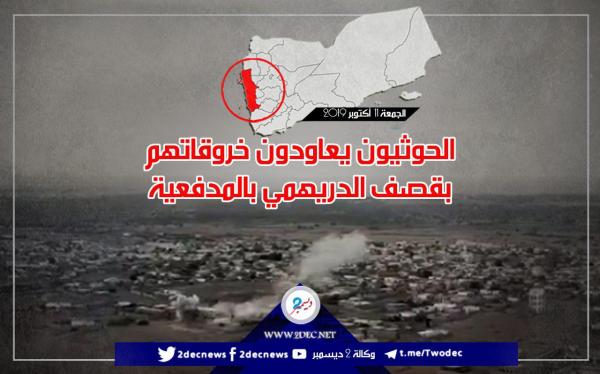 عاودت مليشيا الحوثي، التابعة لإيران، قصفها مواقع القوات المشتركة في مديرية الدريهمي الملاصقة للأطراف الجنوبية لمدينة الحديدة، على الساحل الغربي لليمن. وطبقا لمصدر عسكري، تعرضت