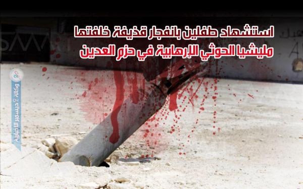 استشهد طفلان بانفجار إحدى مخلفات مليشيا الحوثي الإرهابية من القذائف في منطقة حزم العدين بمحافظة إب. وقال مصدر محلي، إن الطفل "بشير عبده محمد سعيد