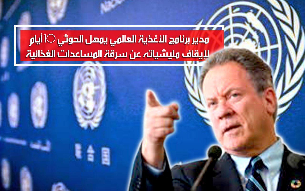 بعث برنامج الأغذية العالمي التابع للأمم المتحدة، اليوم الاثنين 31 ديسمبر 2018، رسالة شديدة اللهجة لزعيم المليشيات الحوثية، مهدداً فيها بتعليق المساعدات إذا لم تقم مليشيا